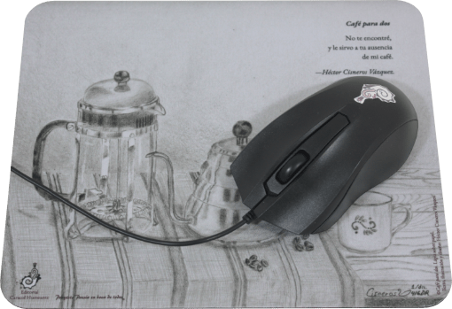 En la serie «Café para dos» el poeta Héctor Cisneros Vázquez, inspirado en los artistas flamencos, dibuja sobre el papel una naturaleza muerta y, como si fuera con el mismo lápiz, escribe en la parte superior derecha un haikú, esa forma poética japonesa que captura la realidad en tan sólo tres versos.